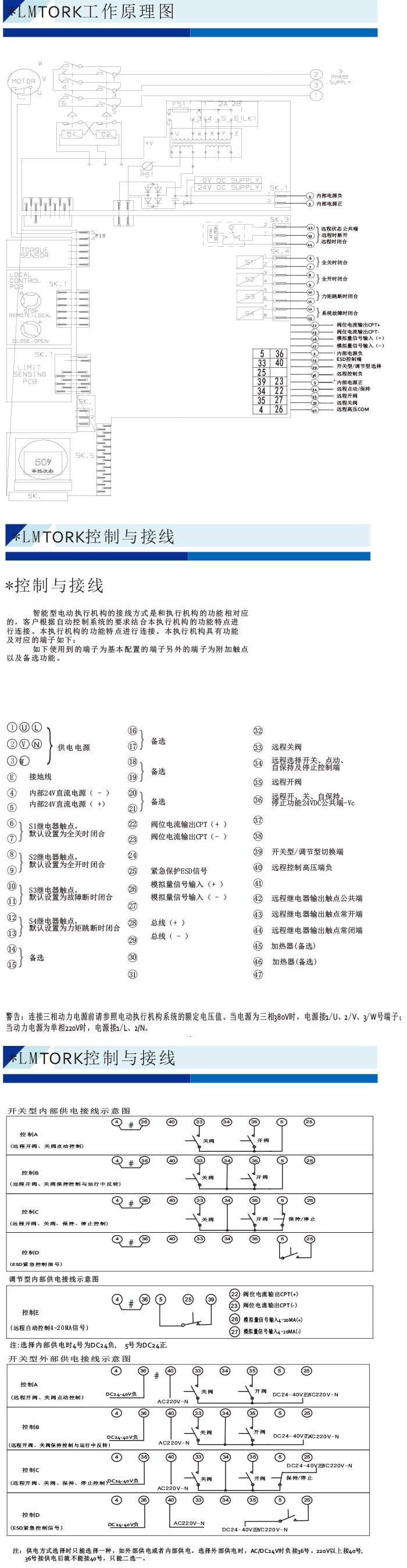 電源以AC380V/220V/110V( 非標(biāo)定制)作為驅(qū)動(dòng)電源,開關(guān)量信號(hào)(有源無源)、4-20mA電流信號(hào)作為控制信號(hào),使閥門運(yùn)動(dòng)到所需位置,實(shí)現(xiàn)其自動(dòng)化控制,最大輸出扭矩達(dá)5000N•M。